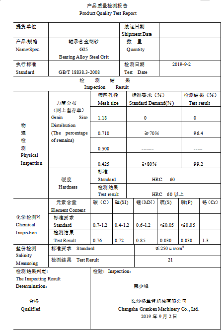 After many years of exploration, Granken has experimented with many customers, mastered the data, and compared them. Developed a series of bearing steel grit.