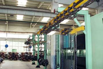 Suspension conveyor line, suspension pipeline structure has C-type closed rail and die forging open type. The closed rail suspension chain bears relatively light weight, and the die forging open type is relatively heavy. The larger the pitch, the heavier the load. With stable operation, high efficiency, large bearing capacity, and low failure rate for continuous operation, the assembly line can turn and climb at will, and can adapt to various geographical conditions. It is widely used in product assembly, material supply, drying, cleaning, spraying and other industries .