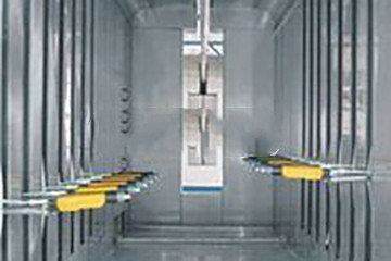 The plastic spraying room is composed of a chamber body, a recycling device, and an electric appliance control.