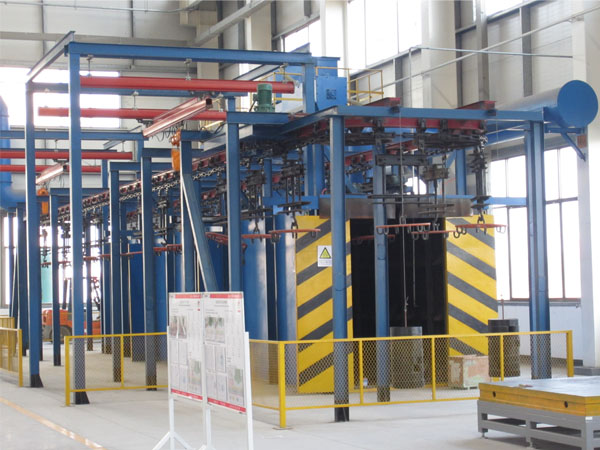 懸鏈通過(guò)式拋丸機(jī)主要適用于大批量工件的拋丸處理。從結(jié)構(gòu)形式上,一般可分為連續(xù)通過(guò)式,普通懸鏈步進(jìn)通過(guò)式、積放鏈?zhǔn)降阮?lèi)別。其工作原理是工件隨吊鏈可連續(xù)運(yùn)行、步進(jìn)運(yùn)行或采用先進(jìn)的積放推式懸鏈輸送工件,使工件在裝卸料以及拋丸區(qū)分別處于停止?fàn)顟B(tài),實(shí)現(xiàn)定點(diǎn)裝卸和定點(diǎn)拋丸工序,根據(jù)工件不同可單點(diǎn)吊重50~2000kg,且生產(chǎn)率高,運(yùn)行可靠,對(duì)各類(lèi)易吊掛類(lèi)零件的大批量清理,非常適用。如發(fā)動(dòng)機(jī)缸體缸蓋、電機(jī)殼體、齒輪、摩托車(chē)發(fā)動(dòng)機(jī)殼體、機(jī)車(chē)鉤尾框組件、轉(zhuǎn)向架組件、五金工具殼體、水泵等清理效果尤佳。是汽車(chē)、拖拉機(jī)、柴油機(jī)、電機(jī)、閥門(mén)等行業(yè)的理想選擇等。一般可按照用戶(hù)產(chǎn)品要求設(shè)計(jì)制作。