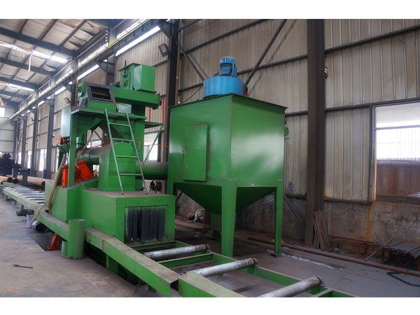 本機主要由室體、轉臺、螺旋輸送器、分離器、提升機、輸丸裝置、拋丸器、除塵系統等部分組成了一個結構簡單、緊湊的轉臺式清理機,在室體頂部設有兩個高速旋轉的拋丸器,將彈丸以高速度拋出打擊在轉臺上回轉的工件。當被打件轉出室體時可以直接看到清理效果,同時更換新的工件。